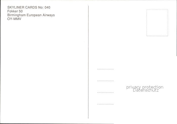 Flugzeuge Zivil Birmingham European Airways Fokker 50 OY-MMV postalisch nicht gelaufen Erhaltung siehe scans