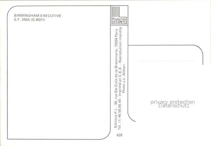 Flugzeuge Zivil Birmingham Executive S.F. 340A G-BSFI postalisch nicht gelaufen Erhaltung siehe scans