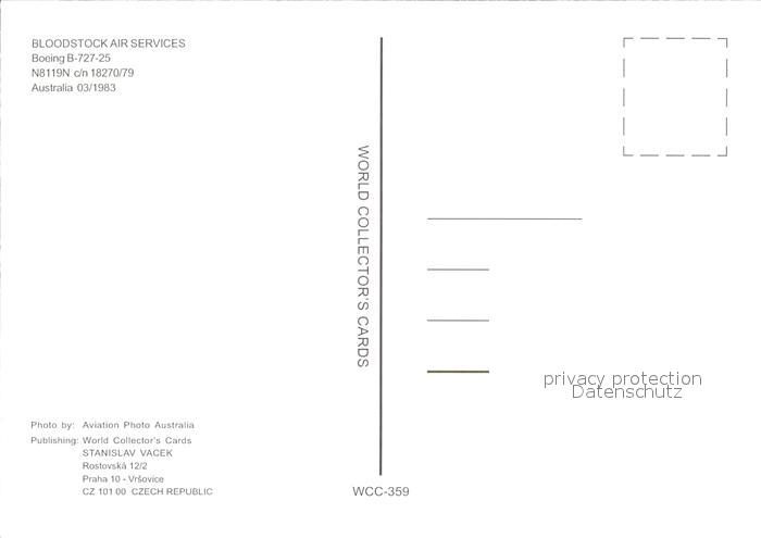 Flugzeuge Zivil Bloodstock Air Services Boeing 727-25 N8119N postalisch nicht gelaufen Erhaltung siehe scans