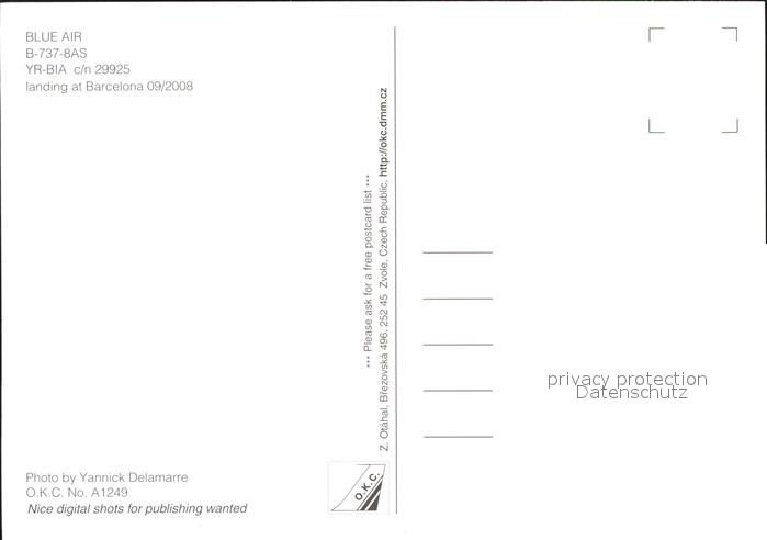 Flugzeuge Zivil Blue Air B-737-BAS YR-BIA c/n 29925 postalisch nicht gelaufen Erhaltung siehe scans
