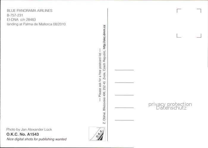 Flugzeuge Zivil Blue Panorama Airlines B-757-231 EI-DNA c/n 28483 postalisch nicht gelaufen Erhaltung siehe scans
