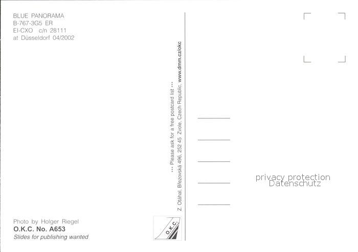 Flugzeuge Zivil Blue Panorama B-767-3G5 ER EI-CXO c/n 28111 postalisch nicht gelaufen Erhaltung siehe scans