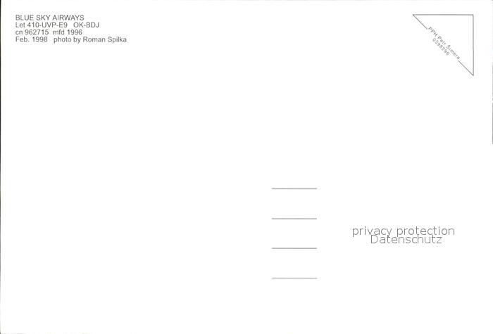 Flugzeuge Zivil Blue Sky Airways Let 410-UVP-E9 OK-BDJ cn 962715 postalisch nicht gelaufen Erhaltung siehe scans