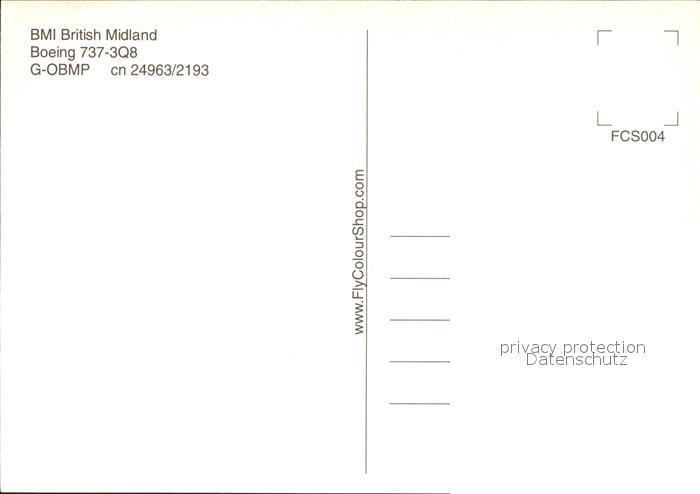 Flugzeuge Zivil BMI British Midland Boeing 737-3Q8 G-OBMP cn24963/2193 postalisch nicht gelaufen Erhaltung siehe scans