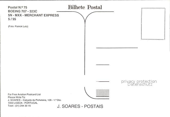 Flugzeuge Zivil Boeing 707-323C 5N-MXX-Merchant Express postalisch nicht gelaufen Erhaltung siehe scans