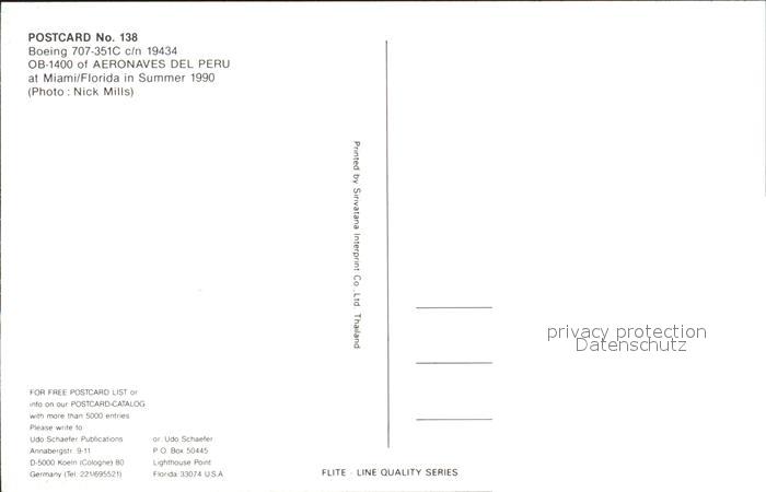 Flugzeuge Zivil Boeing 707-351C c/n 19434 OB-1400 Aeronaves del Peru postalisch nicht gelaufen Erhaltung siehe scans