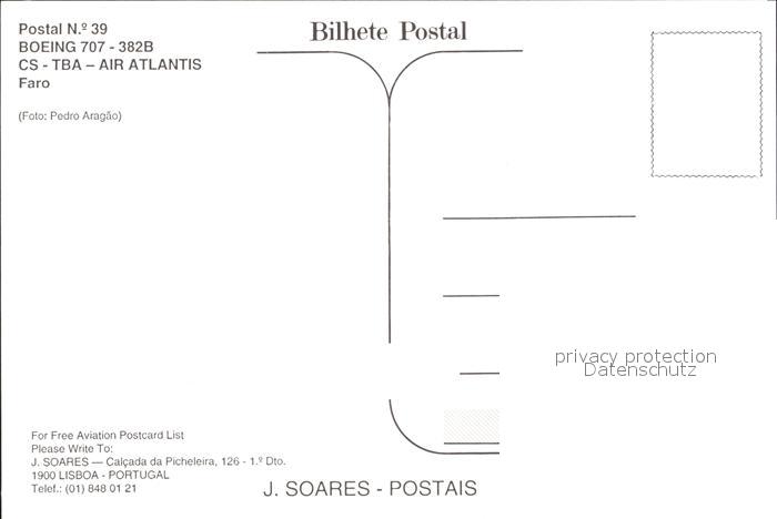 Flugzeuge zivil Boeing 707-382B CS-TBA-Air Atlantas postalisch nicht gelaufen Erhaltung siehe scans