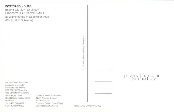 Flugzeuge Zivil Boeing 727-227 c/n 21997 HK-3738X Aces Colombia postalisch nicht gelaufen Erhaltung siehe scans