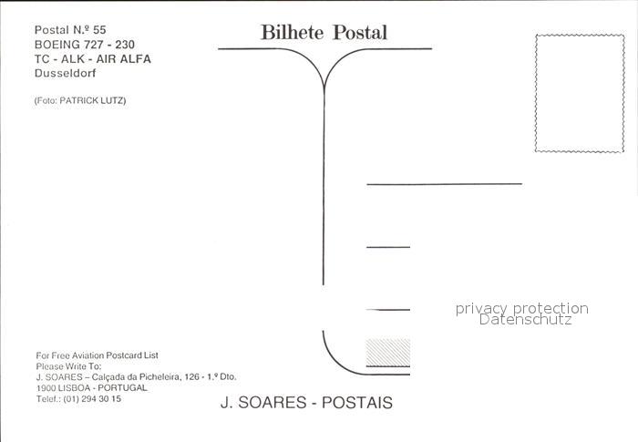 Flugzeuge zivil Boeing 727-230 TC-ALK- Air Alfa postalisch nicht gelaufen Erhaltung siehe scans
