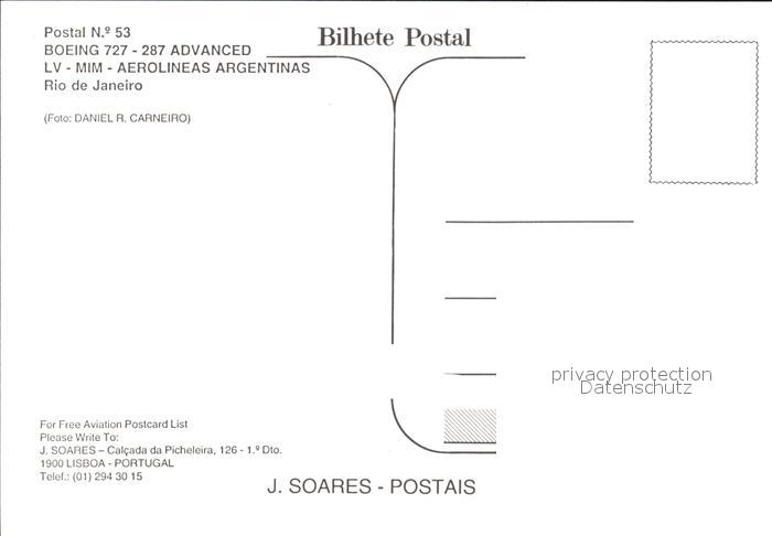 Flugzeuge zivil Boeing 727 287 Advanced LV-MIM Aerolineas Argentinas postalisch nicht gelaufen Erhaltung siehe scans