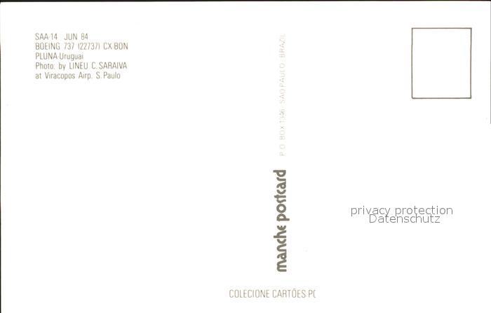 Flugzeuge Zivil Boeing 737 22737 CX-BON PLUNA Uruguai postalisch nicht gelaufen Erhaltung siehe scans