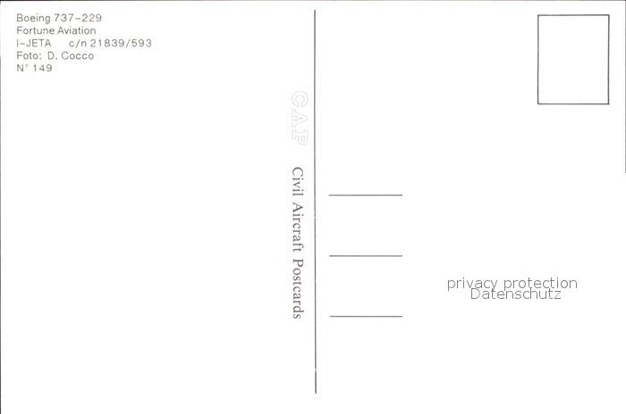 Flugzeuge Zivil Boeing 737-229 Fortune Aviation I-JETA c/n 21839/593 postalisch nicht gelaufen Erhaltung siehe scans