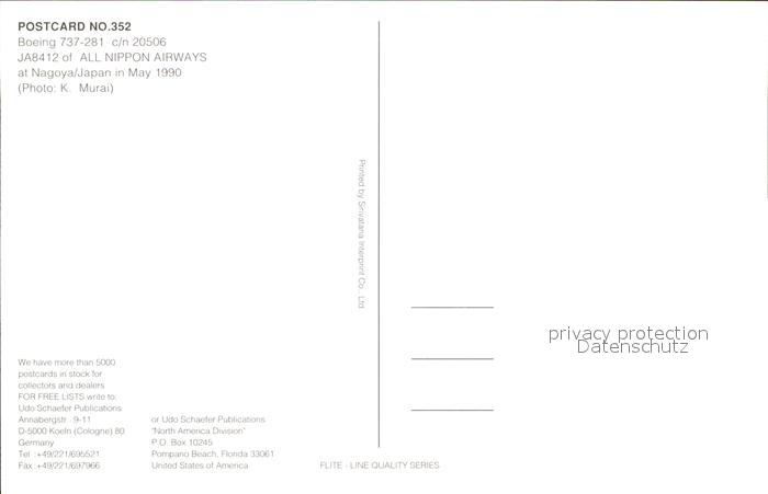 Flugzeuge Zivil Boeing 737-281 c/n 20506 JA8412 All Nippon Airways postalisch nicht gelaufen Erhaltung siehe scans