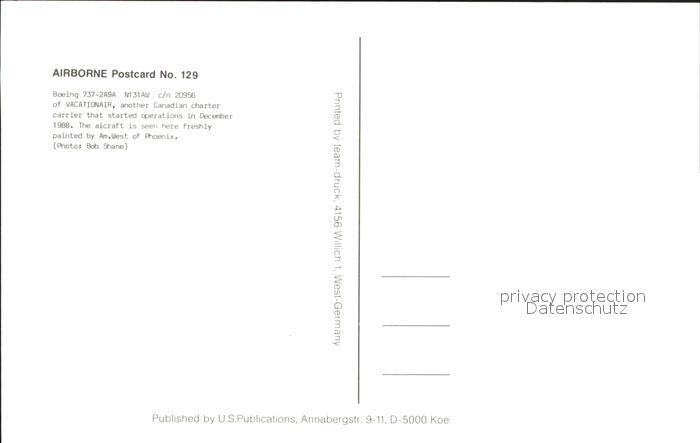 Flugzeuge Zivil Boeing 737-2A9A N131AW c/n 20956 Vacationair postalisch nicht gelaufen Erhaltung siehe scans