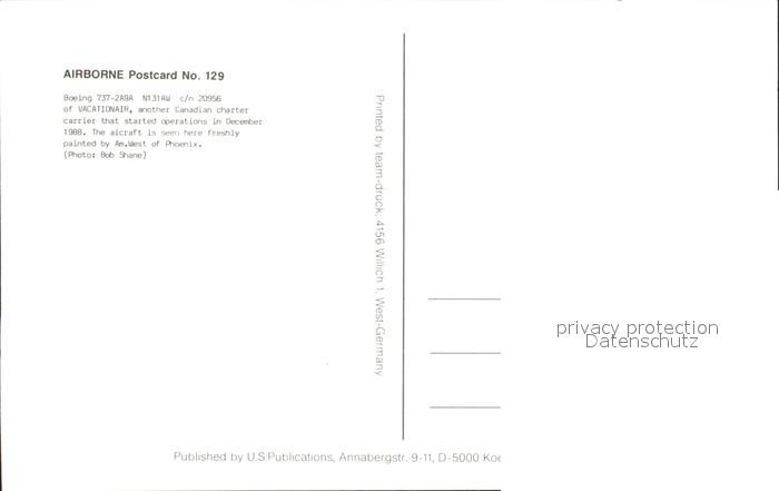Flugzeuge Zivil Boeing 737-2A9A N131AW c/n 20956 Vacationair postalisch nicht gelaufen Erhaltung siehe scans
