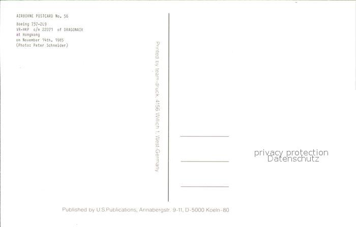 Flugzeuge Zivil Boeing 737-2L9 VR-HKP c/n 22071 Dragonair postalisch nicht gelaufen Erhaltung siehe scans