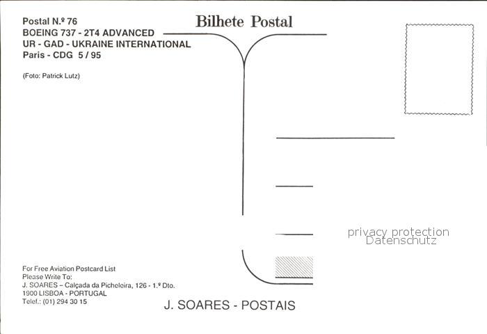 Flugzeuge Zivil boeing 737.2T4 Advanced UR-GAD-Ukraine International postalisch nicht gelaufen Erhaltung siehe scans