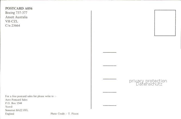 Flugzeuge Zivil Boeing 737-377 Ansett Australia VH-CZL C/n 23664 postalisch nicht gelaufen Erhaltung siehe scans