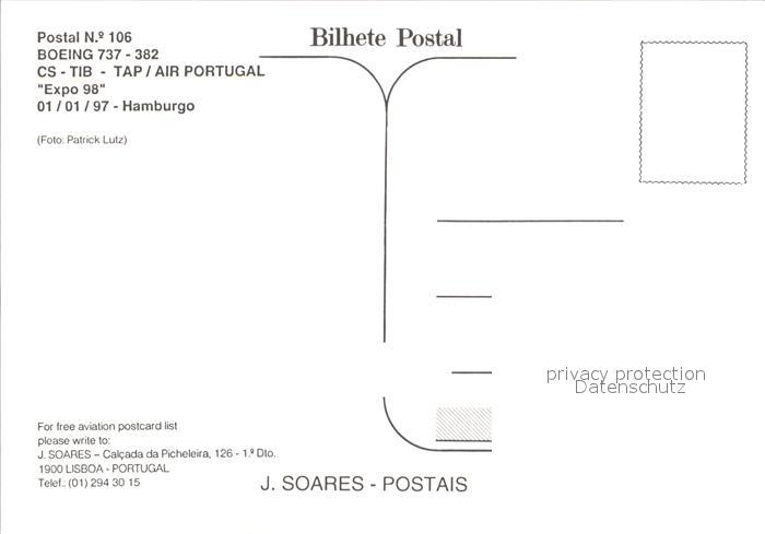 Flugzeuge Zivil Boeing 737-382 CS-TIB TAP Air Portugal Expo 98 postalisch nicht gelaufen Erhaltung siehe scans