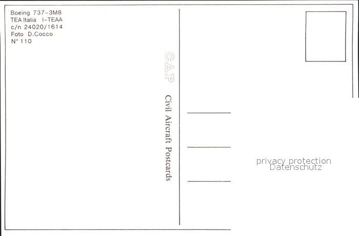Flugzeuge Zivil Boeing 737-3M8 TEA Italia I-TEAA c/n 24020/1614 postalisch nicht gelaufen