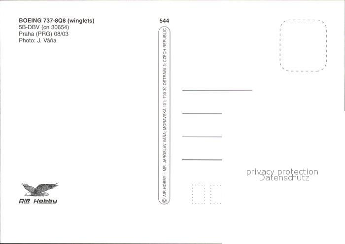 Flugzeuge Zivil Boeing 737-8Q8 5B-DBV cn 30654 postalisch nicht gelaufen Erhaltung siehe scans