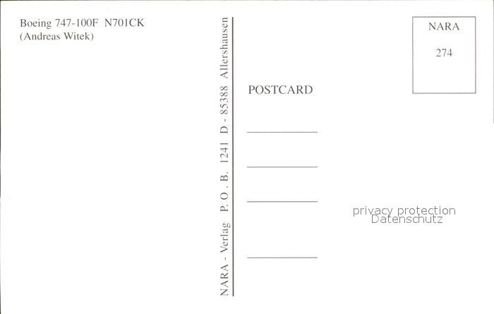 Flugzeuge Zivil Boeing 747-100F N701CK Kalitta American International Airlines postalisch nicht gelaufen Erhaltung siehe scans