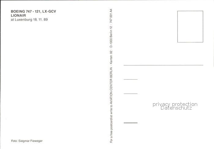 Flugzeuge Zivil Boeing 747-121 LX-GCV Lionair postalisch nicht gelaufen Erhaltung siehe scans