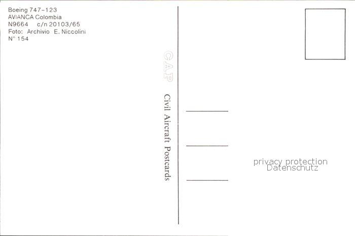 Flugzeuge Zivil Boeing 747-123 Avianca Colombia N9664 c/n 20103/65 postalisch nicht gelaufen