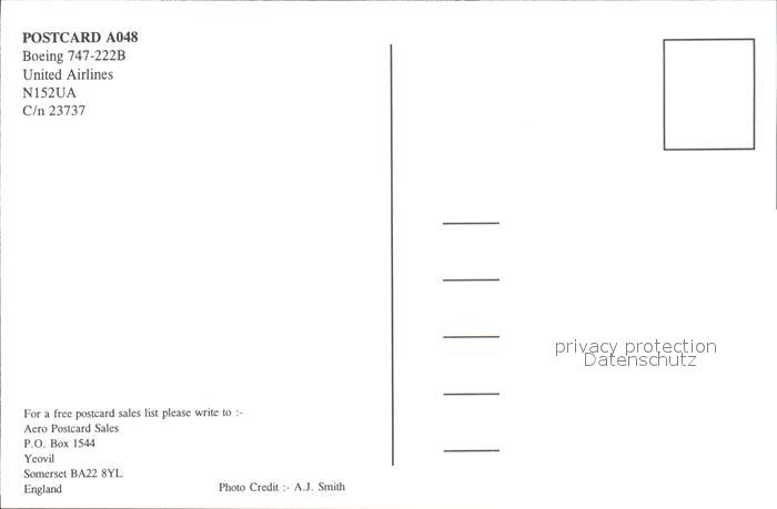 Flugzeuge Zivil Boeing 747-222B United Airlines N152UA postalisch nicht gelaufen Erhaltung siehe scans