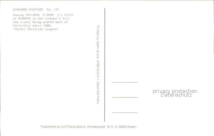 Flugzeuge Zivil Boeing 747-283B F-GHBM c/n 20120 postalisch nicht gelaufen Erhaltung siehe scans