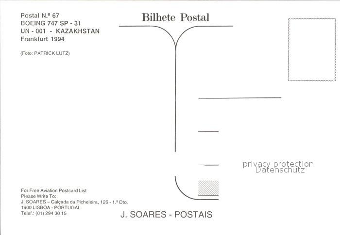 Flugzeuge zivil Boeing 747 SP-31 UN-001-Kazakhstan postalisch nicht gelaufen Erhaltung siehe scans