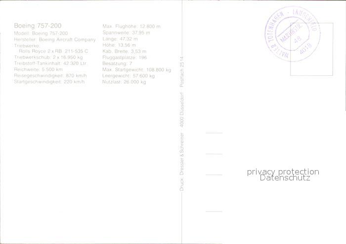 Flugzeuge Zivil Boeing 757-200 LTS postalisch nicht gelaufen Erhaltung siehe scans