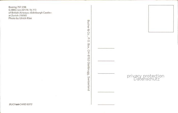 Flugzeuge Zivil Boeing 757-236 G-BIKC(cn 22174 / fn 11) British Airways Edinburgh Castle postalisch nicht gelaufen