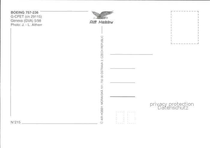 Flugzeuge Zivil Boeing 757-236 G-CPET cn 29115 postalisch nicht gelaufen Erhaltung siehe scans