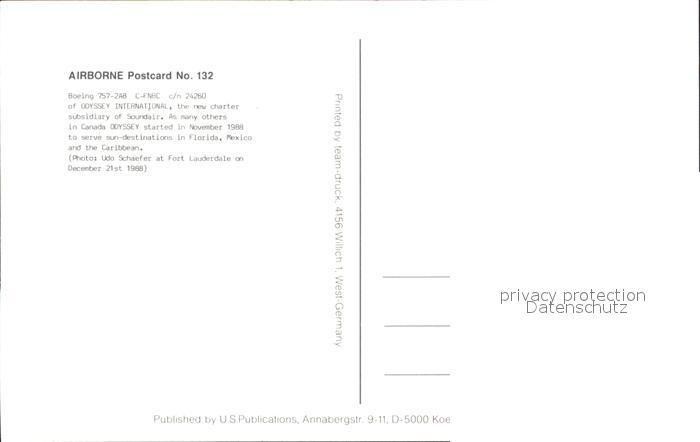 Flugzeuge Zivil Boeing 757-2A8 c/n 24260 Odyssey International postalisch nicht gelaufen Erhaltung siehe scans