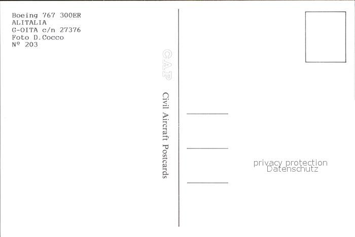 Flugzeuge Zivil Boeing 767 300ER Alitalia G-OITA c/n 27376 postalisch nicht gelaufen Erhaltung siehe scans