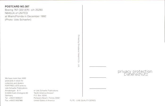 Flugzeuge Zivil Boeing 767-322 ER c/n 25280 N645UA United postalisch nicht gelaufen Erhaltung siehe scans