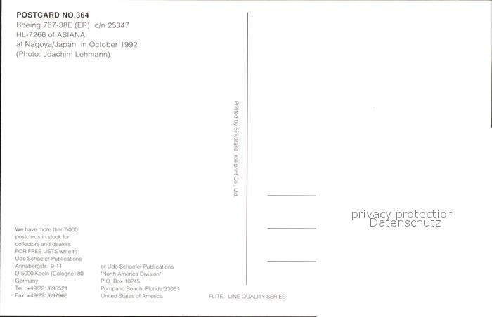 Flugzeuge Zivil Boeing 767-38E ER c/n 25347 HL-7266 Asiana postalisch nicht gelaufen Erhaltung siehe scans