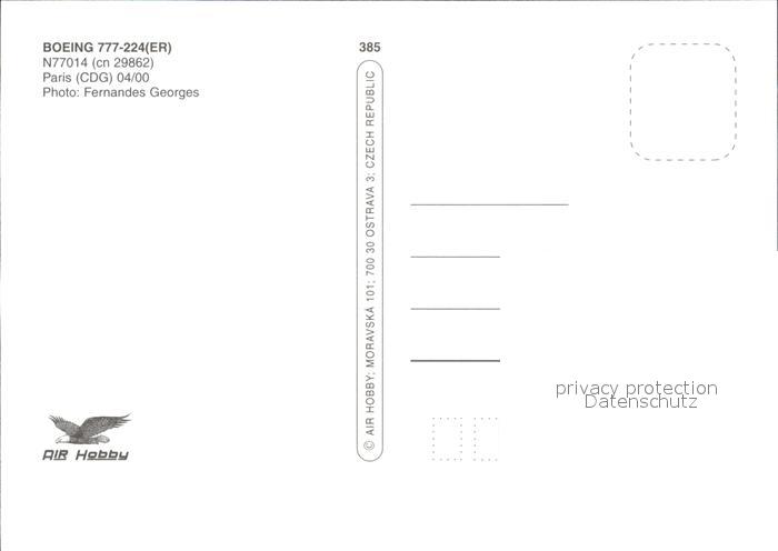 Flugzeuge zivil Boeing 777-224 Continental postalisch nicht gelaufen Erhaltung siehe scans