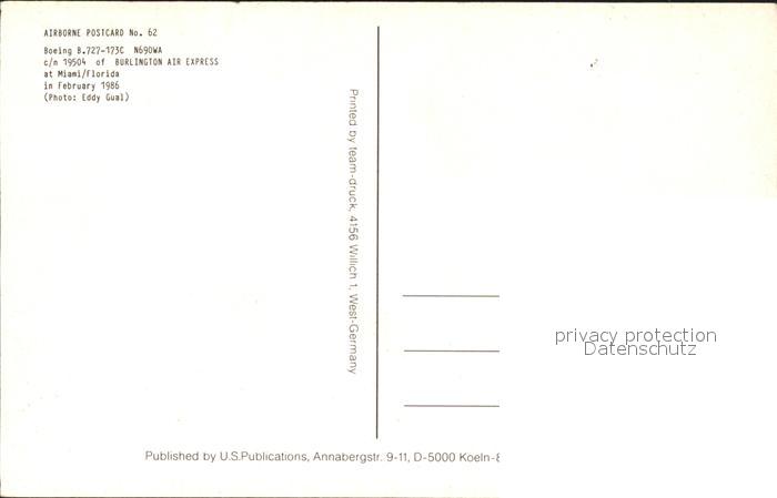 Flugzeuge Zivil Boeing B.727-173C N690WA c/n 19504 Burlington Air Express postalisch nicht gelaufen Erhaltung siehe scans