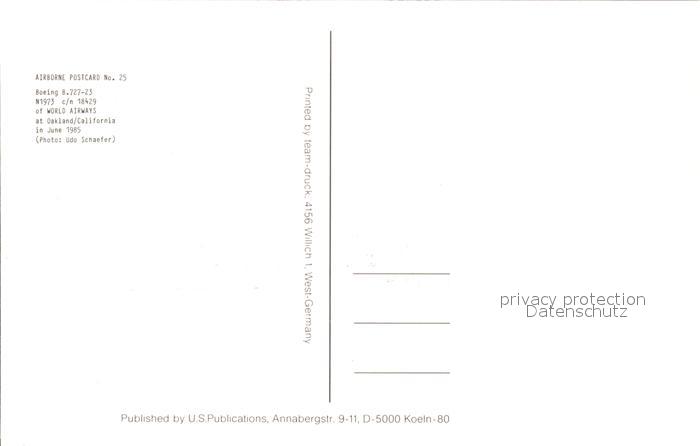 71809016 Flugzeuge Zivil Boeing B.727-23 N1973 c/n 18429 World Airways KatCode 22120000001300