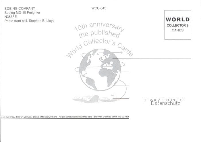 Flugzeuge Zivil Boeing Company Boeing MD-10 Freighter N386FE postalisch nicht gelaufen Erhaltung siehe scans