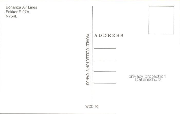 Flugzeuge Zivil Bonanza Air Lines Fokker F-27A N754L postalisch nicht gelaufen