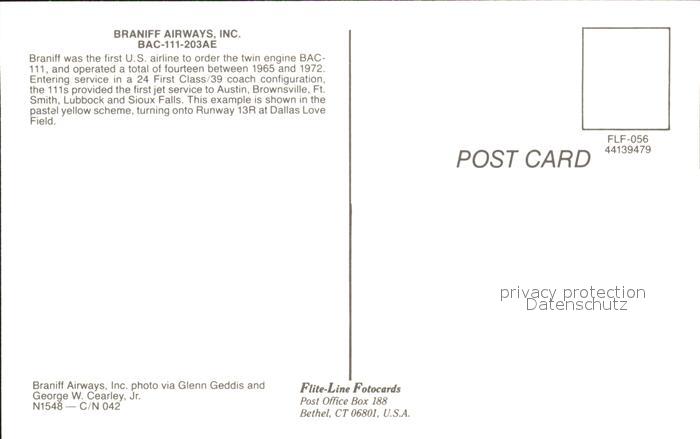 Flugzeuge Zivil Braniff Airways BAC-111-203AE N1548 c/n 042 postalisch nicht gelaufen Erhaltung siehe scans