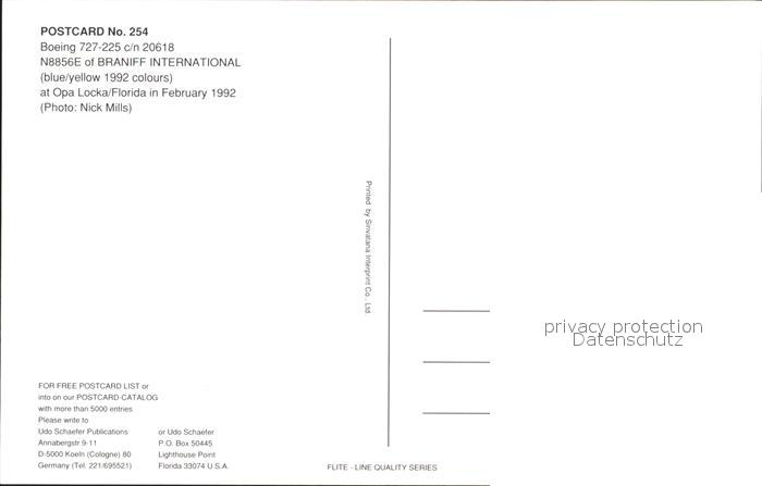 Flugzeuge Zivil Braniff International Boeing 727-225 c/n 20618 N8856E postalisch nicht gelaufen Erhaltung siehe scans