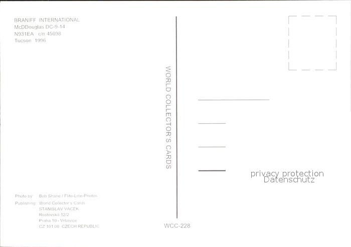 Flugzeuge Zivil Braniff International McDDouglas DC-9-14 N931EA c/n 45698 postalisch nicht gelaufen Erhaltung siehe scans