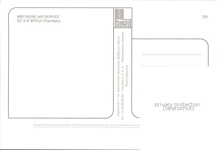 Flugzeuge Zivil Bretagne Air Service DC-3 F-BYCU postalisch nicht gelaufen Erhaltung siehe scans