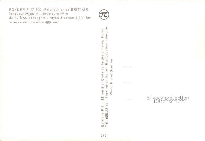 Flugzeuge Zivil Brit Air Fokker F-27 500 postalisch nicht gelaufen