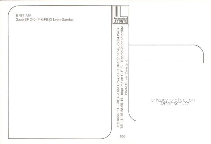 Flugzeuge Zivil Brit Air Saab SF 340 F-GFBZ postalisch nicht gelaufen Erhaltung siehe scans