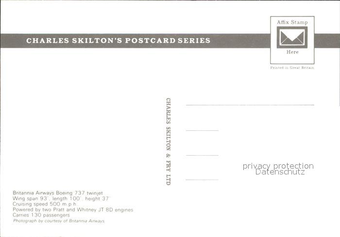 Flugzeuge Zivil Britannia Airways Boeing 737 postalisch nicht gelaufen Erhaltung siehe scans